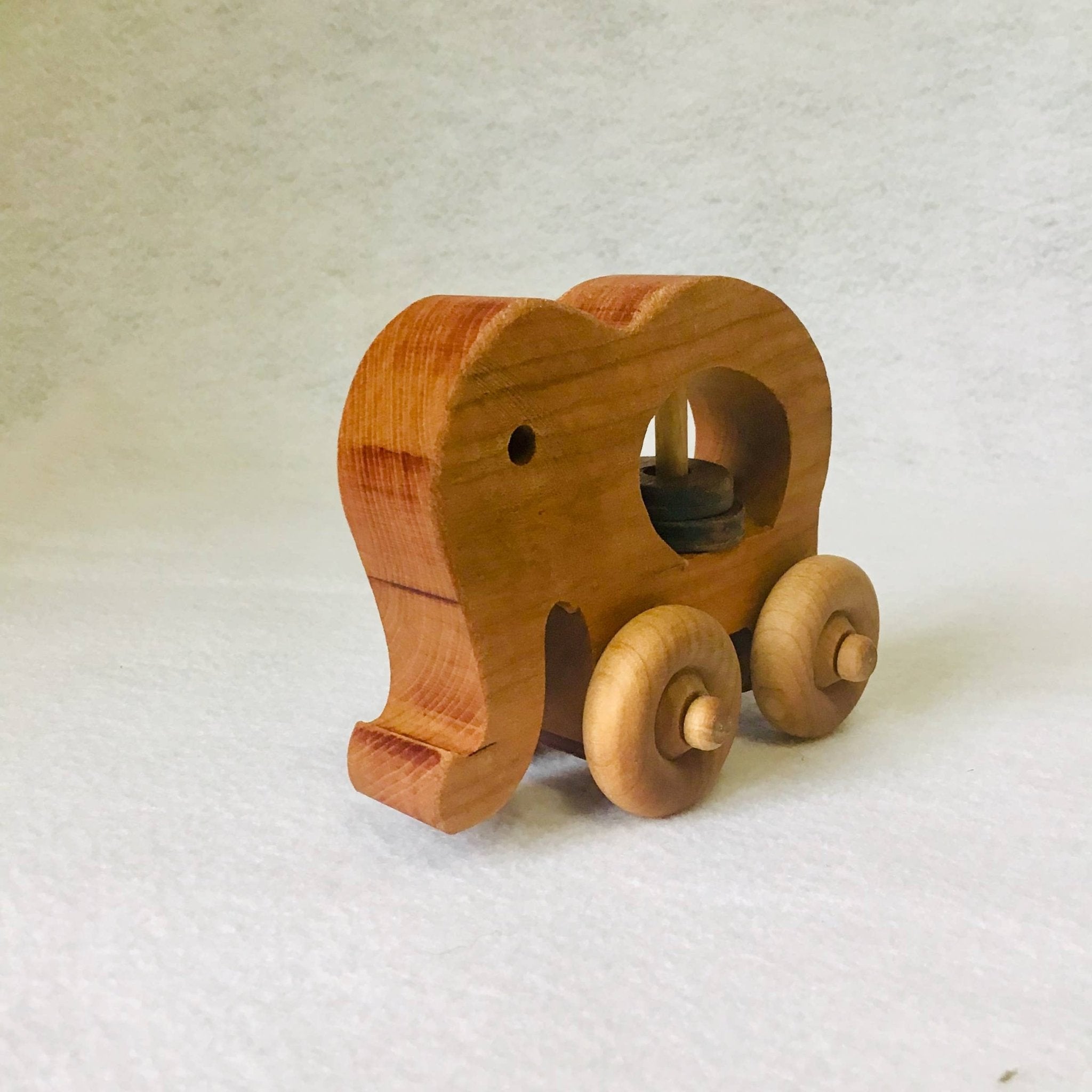 While other toy makers use paints and stains we use high grade, nicely figured woods, (walnut, cherry, bubinga, paduak, maple) for our toys. Elephant, Hedgehog, Turtle, Duck. The baby rattles on wheels are a great addition to any nursery and make great 1st birthday or baby shower gifts.