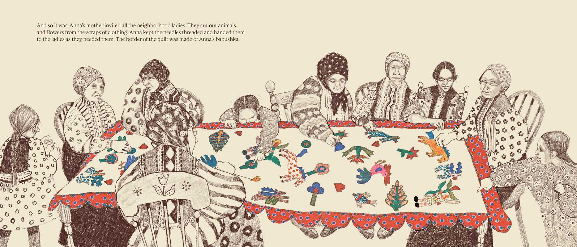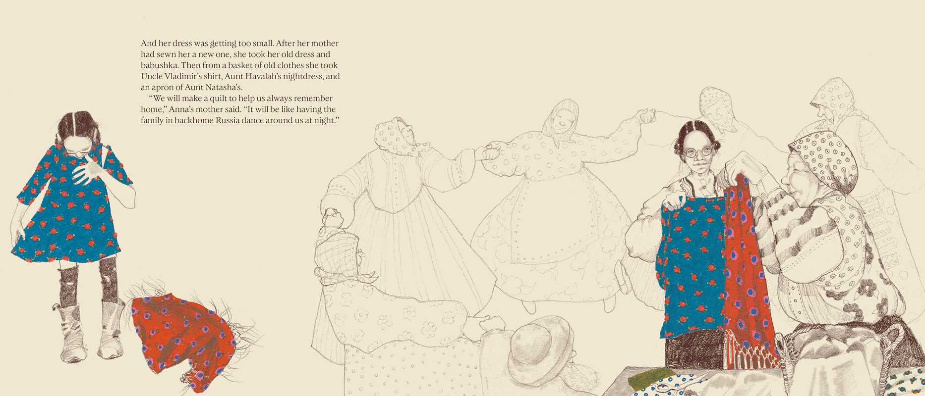“We will make a quilt to help us always remember home,” Anna’s mother said. “It will be like having the family in backhome Russia dance around us at night.”