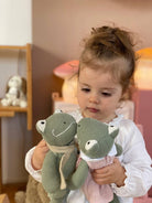 Get ready for ribbetting fun with Paulette! This cute little frog wears a pretty pink dress and is made of soft, knitted cotton. Perfect for tiny hands, this baby rattle is sure to make playtime extra hoppy.