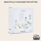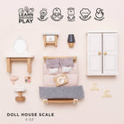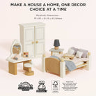 This sweet miniature bedroom set is a real dream come true. With a classic design in lovely neutral tones, it makes a stunning addition to any child’s small-world play universe. A restful nights sleep beckons thanks to the comfy double bed, complete with cosy quilt and squishy pillows - all topped off with a stylish throw and wooden tray for serving up delicious breakfasts in bed. There’s also a smart wardrobe with coat hangers, a bedside table with a lamp, plus, a gorgeous dressing table, stool and accessories for acting out petit pampering sessions.