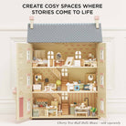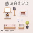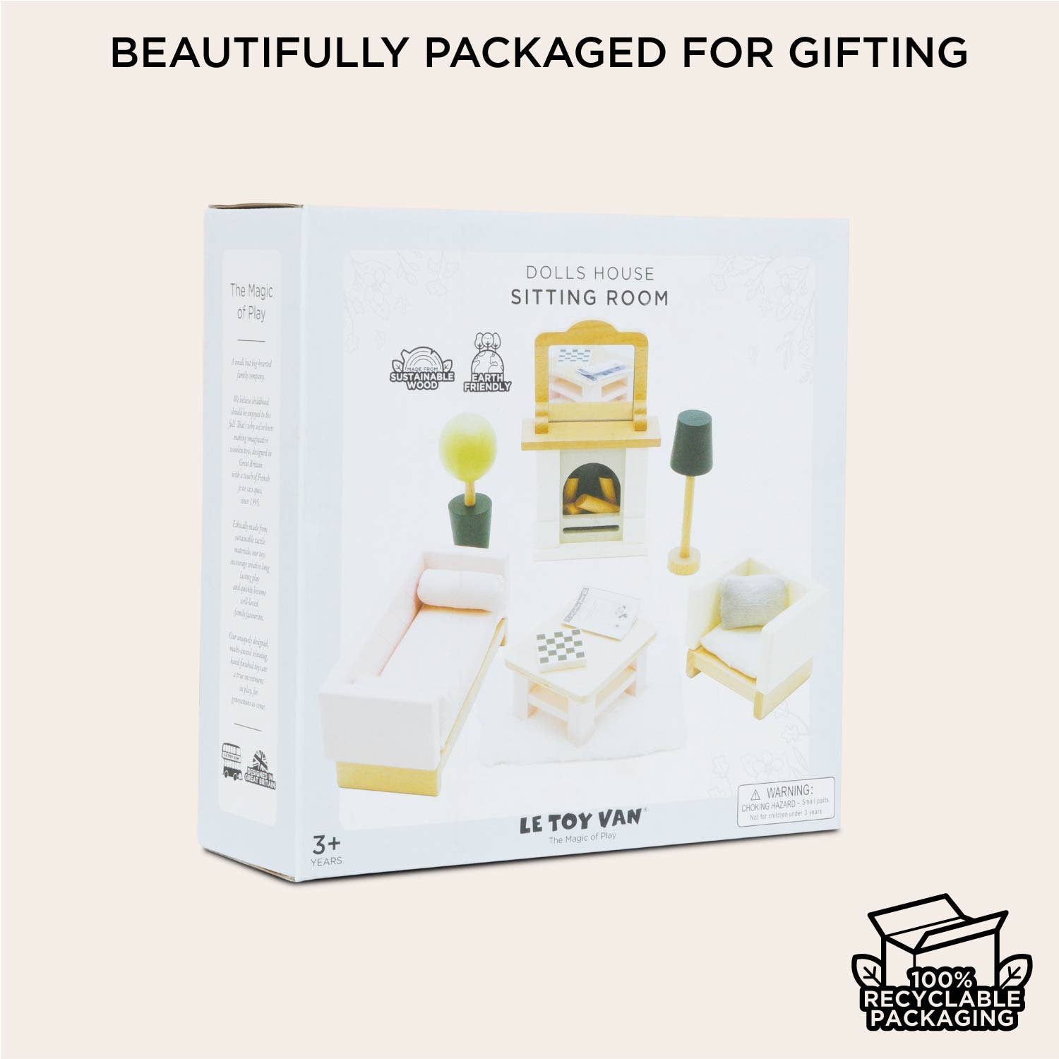 Sit back and relax with this stylish miniature living room set, just the ticket to bring the wow factor to any child’s dream dolls house setup. Complete with 19 individual accessories, including 2 squishy sofas - the perfect spot for reading the newspaper or playing family board games. And no living room would be complete without a coffee table, a cosy rug and a lamp. There’s even a log fireplace with a mantlepiece and mirror above to complete the look. Compatible with all of our dolls, dolls houses and accessories.