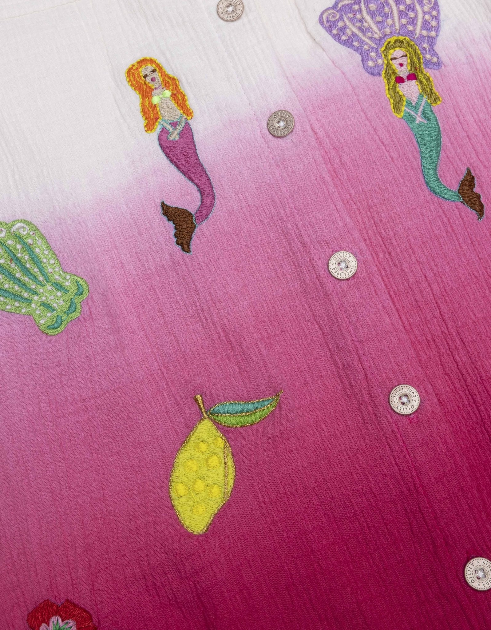 Oilily Biggy Dip Dye blouse with playfully placed embroidered elements that brings a smile to everyone's face. Breezy and loose-fitting, perfect for summer.